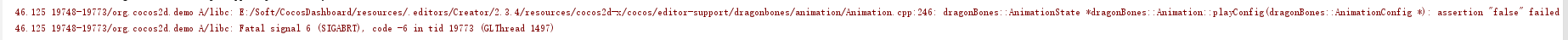 E:/Soft/CocosDashboard/resources/.editors/Creator/2.3.4/resources/cocos2d-x/cocos/editor-support/dragonbones/animation/Animation.cpp:246: dragonBones::AnimationState *dragonBones::Animation::playConfig(dragonBones::AnimationConfig *): assertion “false” failed