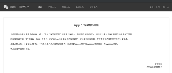 是不是因为现在微信分享没有返回,所以导致onResp方法压根就没进去。(个人猜测)