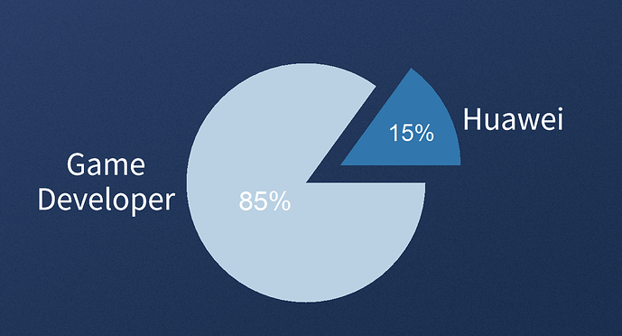 很重要的一点是,华为提供更高比例的游戏联运分成,相比于 Google Play 开发者分成 70%,华为 AppGallery 开发者分成达到 85%,并且会持续两年。