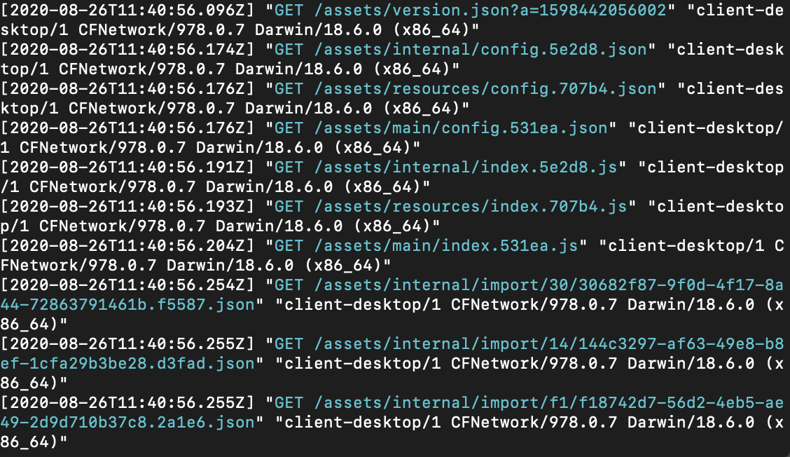 然后我再运行一次,发现 main 包还是正常更新,其他包因为md5没变,所以直接用缓存。服务器的日志,提示重新加载了 main 包的资源。说明正常更新了