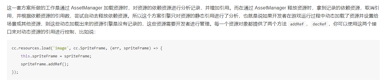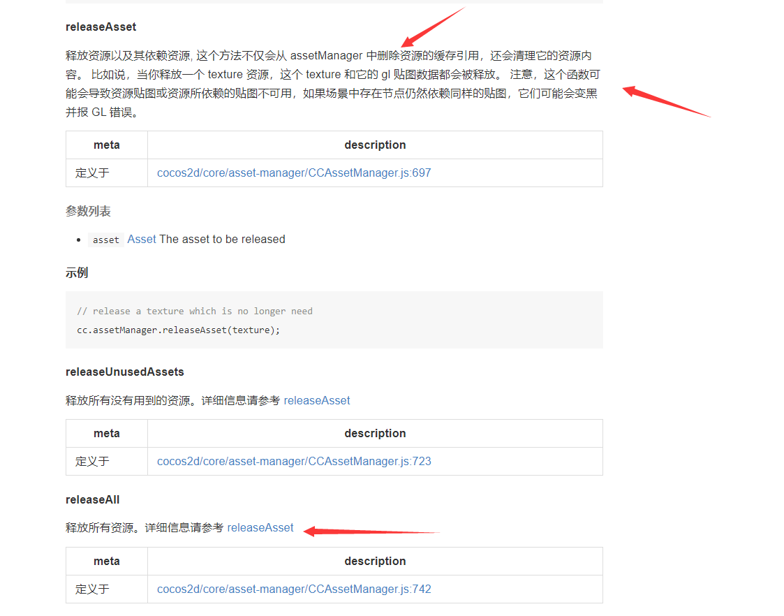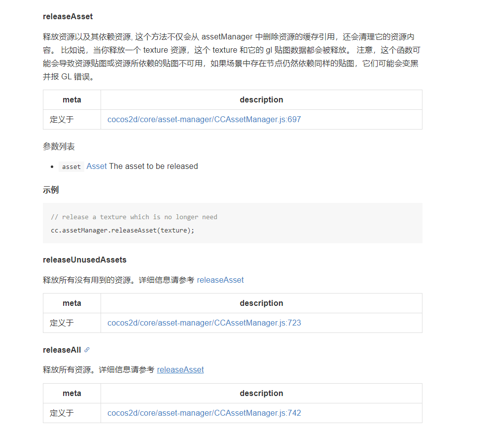 这个是文档中对于releaseAsset 和releaseAll的说明