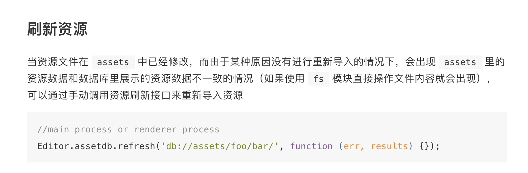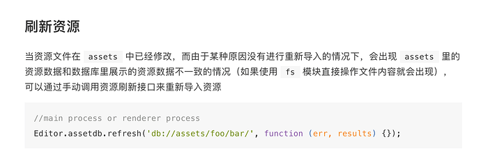 由于我写的扩展包会在代码中创建一个assets目录下的文件,但是创建完后assets列表并没有刷新,也就是没有生成mate文件。所以我想能不能通知编辑器刷新下assets目录,让其自动导入我创建的文件。