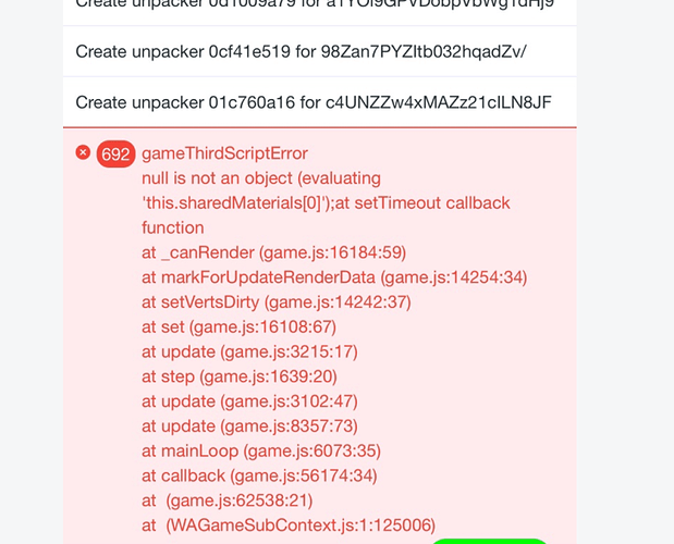 手机上运行微信小游戏的时候偶尔会出现