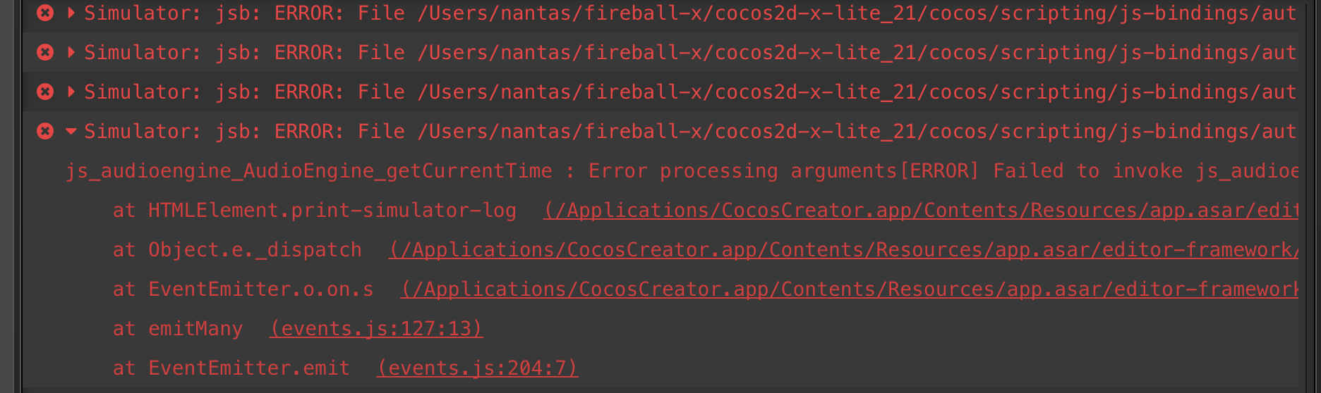 Simulator: jsb: ERROR: File /Users/nantas/fireball-x/cocos2d-x-lite_21/cocos/scripting/js-bindings/auto/jsb_cocos2dx_audioengine_auto.cpp: Line: 331, Function: js_audioengine_AudioEngine_getCurrentTime