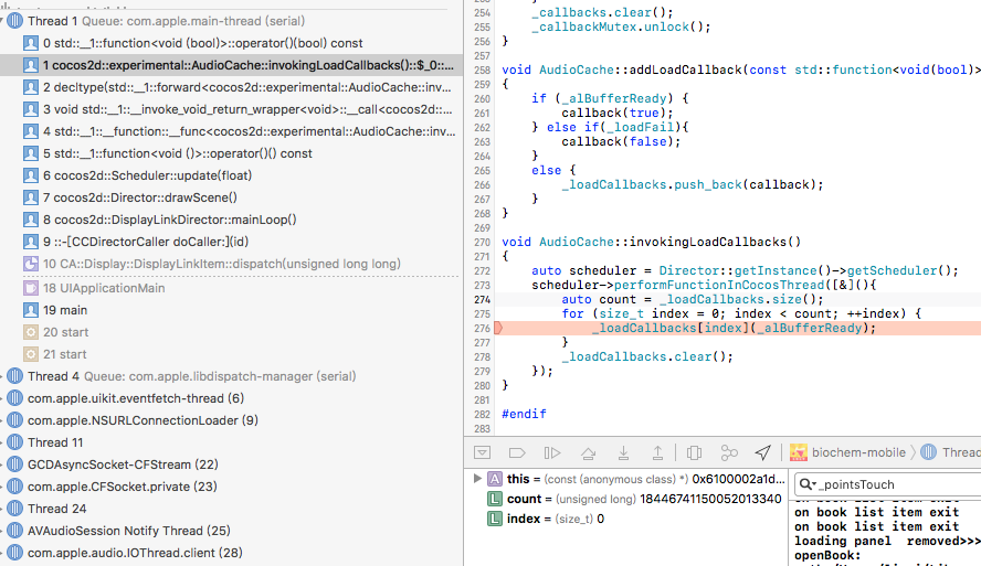 如图,在IOS模拟器下(还没测真机)频繁的 jsb.AudioEngine.uncacheAll();