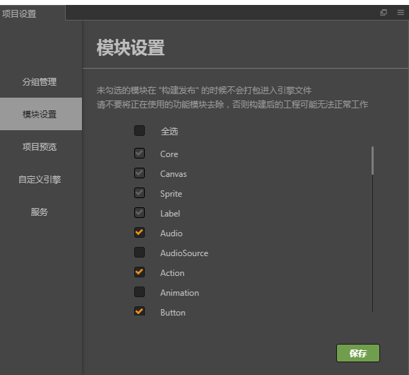 有点奇怪,可以看下 项目目录/settings/project.json 下的 excluded-modules 字段有剔除了 Audio 模块吗