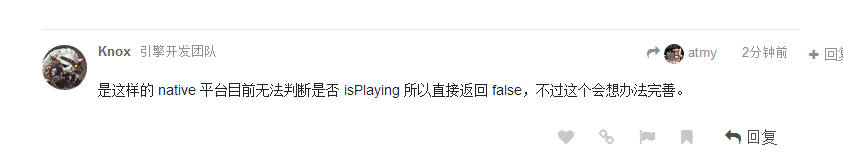 我看了下底层实现,是这么操作的,意思就是原生平台就返回false,web下才返回true,isPlaying不是判断是否正在播放吗?isPlaying和平台有关系吗?