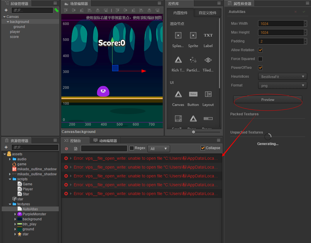 为啥点击自动图集的预览会报错,如图: