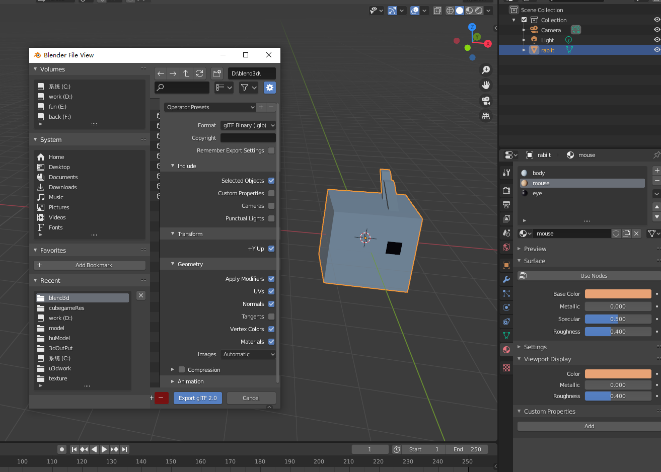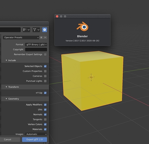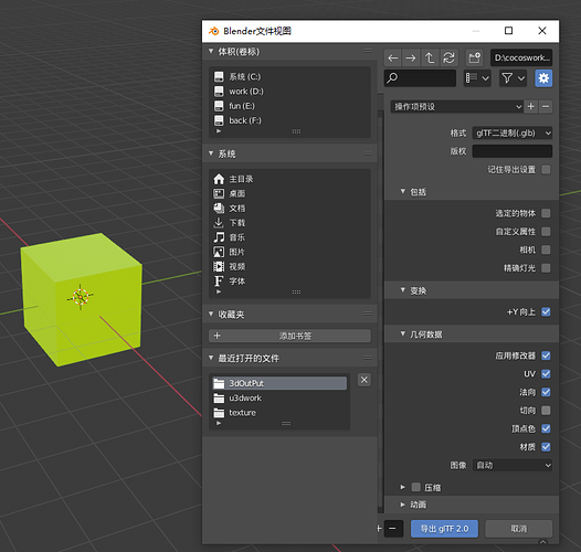 如题,上图为blender界面,下图为cocos界面, 导出设置参数如题所示,求教,应该怎么导出。。。 目前导出的模型,颜色丢失了。 cocos版本1.1.0