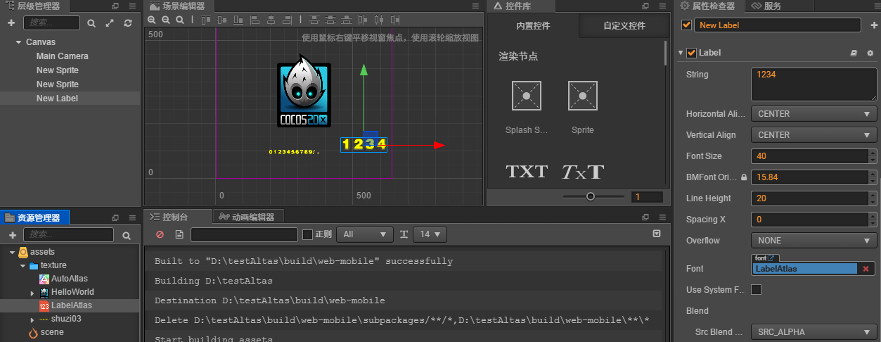 不对,你拖入的只是bmfont对应的图片,我还以为你是新建了label,使用了这个fnt