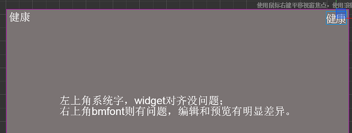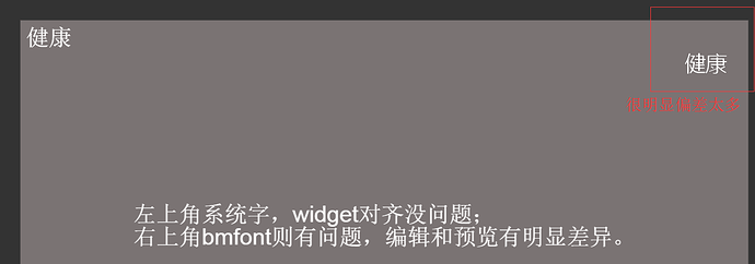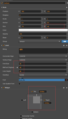 左右两个‘健康’分别使用了系统字和bmfont,且都是用了widget靠边对齐。右侧参数:
