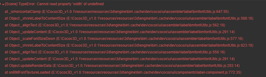 没错,这个问题我也遇到了。如果使用.fnt字体,并且设置Label的模式为 shrink的话,如果你的文本内容过长,应该会开始自动缩小字体来适应自己的边框。但是这个时候就会报错