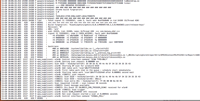 11-28 10:06:32.983 639 639 F DEBUG : signal 11 (SIGSEGV), code 2 (SEGV_ACCERR), fault addr 0xdf5b8b08