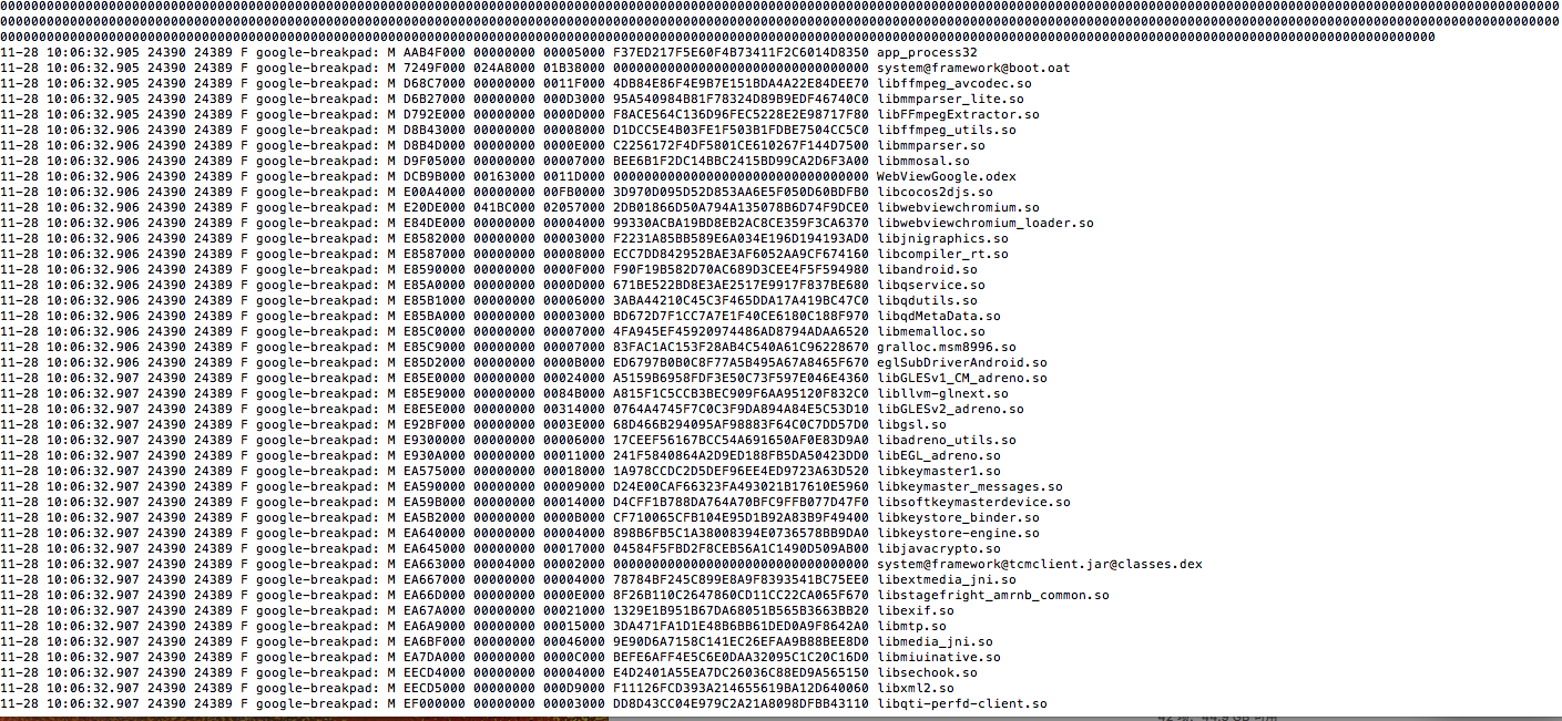 11-28 10:06:33.010 639 639 F DEBUG : #02 pc 00002db7 /system/lib/liblog.so (__android_log_print+42)