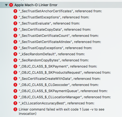 昨天根据熊猫老师说的 删除build目录后 重新构建 然后Xcode升级到8.3.3 重新配置了项目 但是报了这个错 也导入了libicucore.A.tbd 查了这个报错原因 说是有重复文件 检查了下 没有发现有重复的。。。。