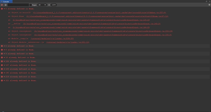 重新加载引擎时报错,重新打开CocosCreator或菜单Developer->Reload的时候