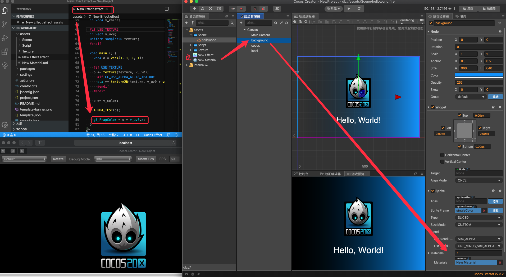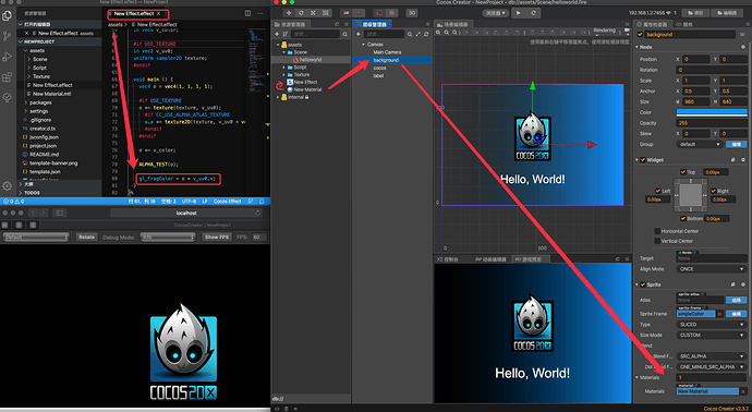 - 「场景编辑器」面板和「游戏预览」面板表现一致,且符合预期。