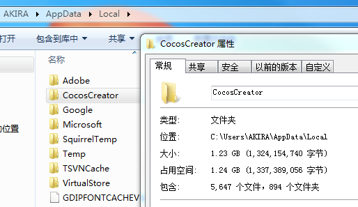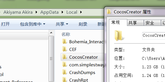 ##但是Creator默认安装在C盘的用户目录,导致两个用户目录下同时存在1G大的CocosCreator的文件夹,