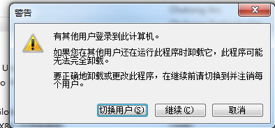 而且在控制面板里也只有一个卸载选项,点击后就报这个警告,