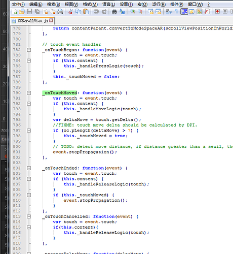 这是scrollView的事件回调,可以看到scrollView的onTouchBegan是没有阻止事件传递的,所以你的button能响应touchBegan事件