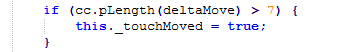 这里的意思就是,如果你的move距离超过7,touchMoved就为true,而onTouchEnded回调里又有这样的判断