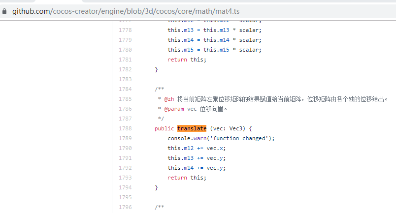 https://github.com/cocos-creator/engine/blob/cdf18b197ba4cb99f1c901733f2b66de026e61ef/cocos/core/math/mat4.ts#L1781