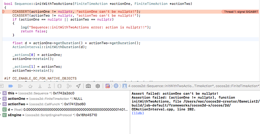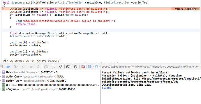 执行一段具有回调的action,真机和模拟器都直接崩溃,web端没有报错。错误信息如下: