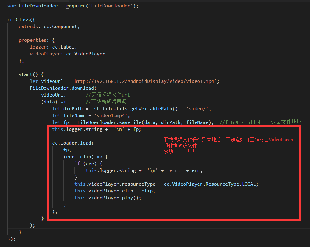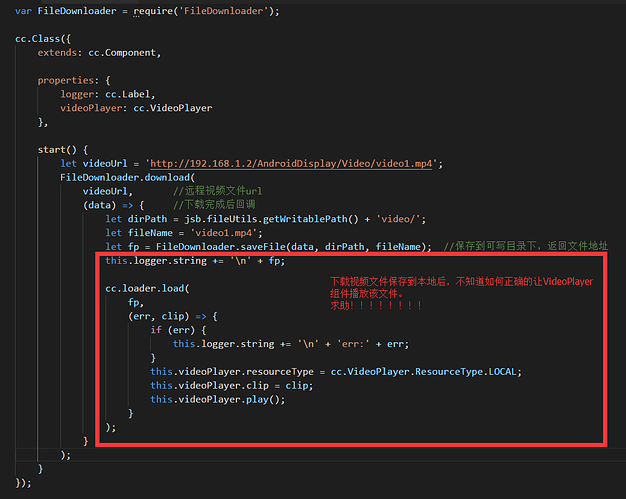 大家好,我通过 XMLHttpRequest 下载服务器的MP4后,使用jsb.fileUtils.writeDataToFile 写入到本地后,不知道如何动态使用videoPlayer来播放这个MP4文件,求助各位大神。