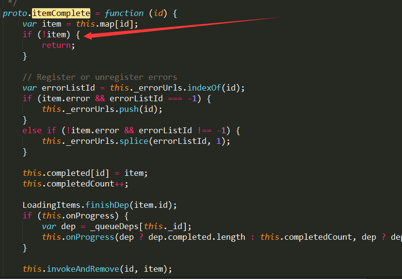 卡住代码:loading-items.js文件,箭头所指item为null,导致未走到下面的回调。