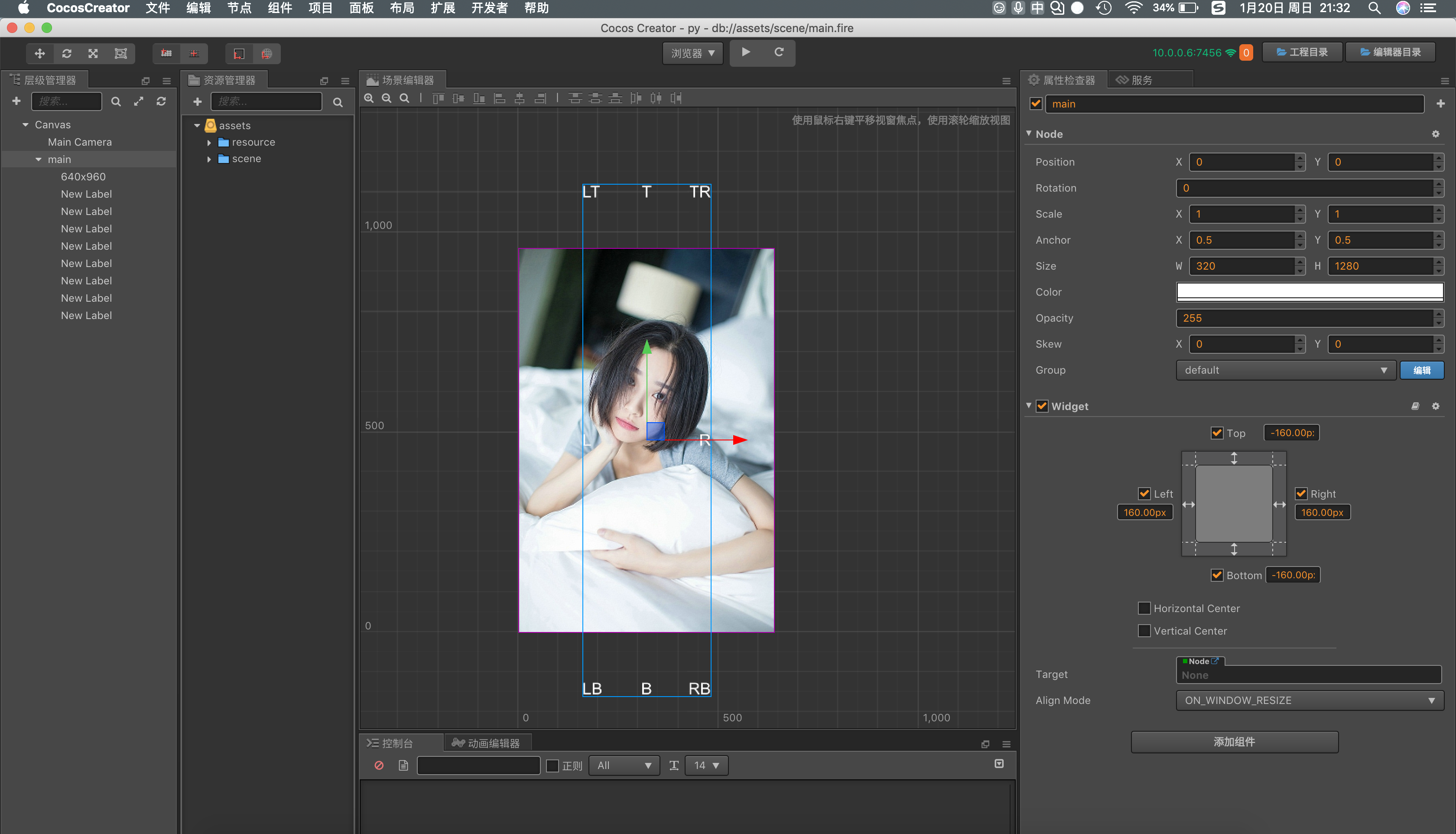 重现方式:创建一个项目,在Canvas下创建一个空节点,增加widget,设置上下左右均为0. 修改Canvas的设计分辨率为640960(原来是:960640)。widget的上下左右的属性发生变化。