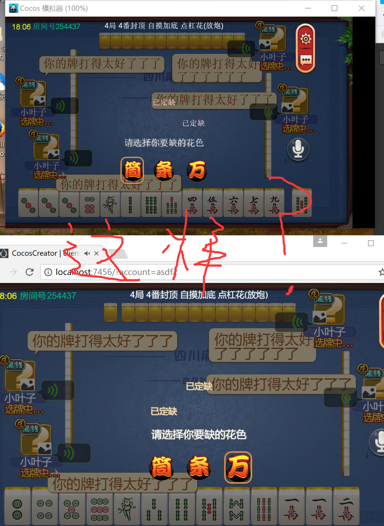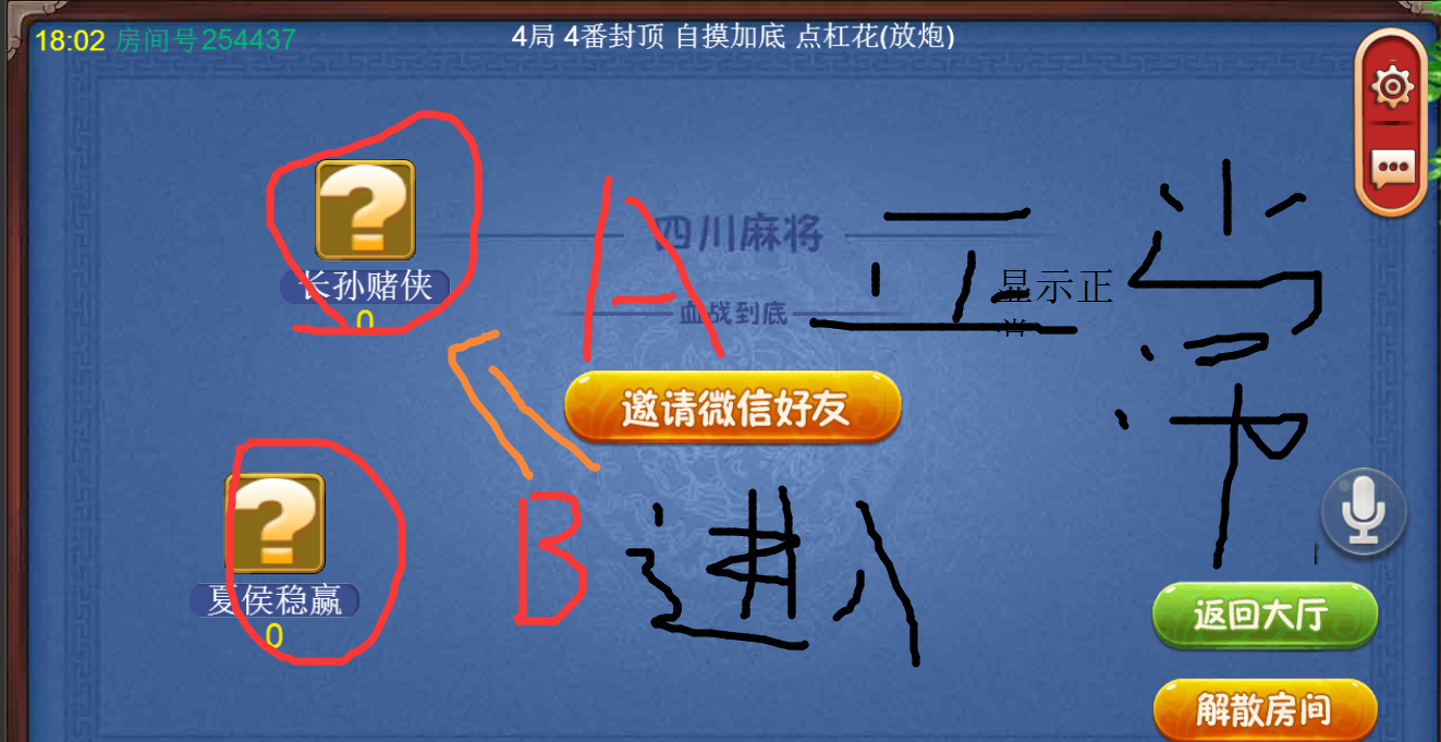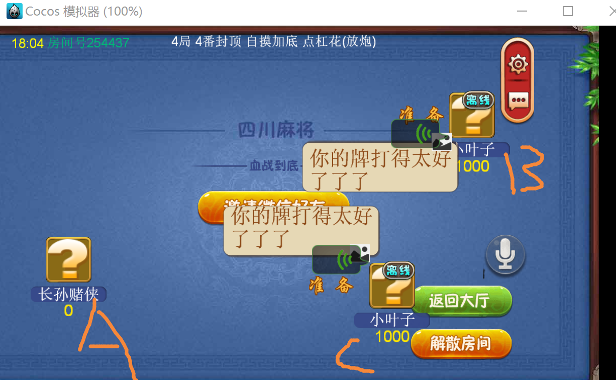 最后一个玩家进入开始游戏时, 整个游戏的用户A,b,c,d 都显示离线 无法对局游戏。但是其中奇怪的一点是 用户之间的申请结束游戏 都可以收到 , 四个用户都同意结束时 ,游戏就结束 跳到结算页面 。 问题就在对局 和用户进入房间 。 <img src="/uploads/default/original/3X/5/b/5b07104bd499692eb52c0096df7e990deb9635b5.jpg" width="690" height="422">