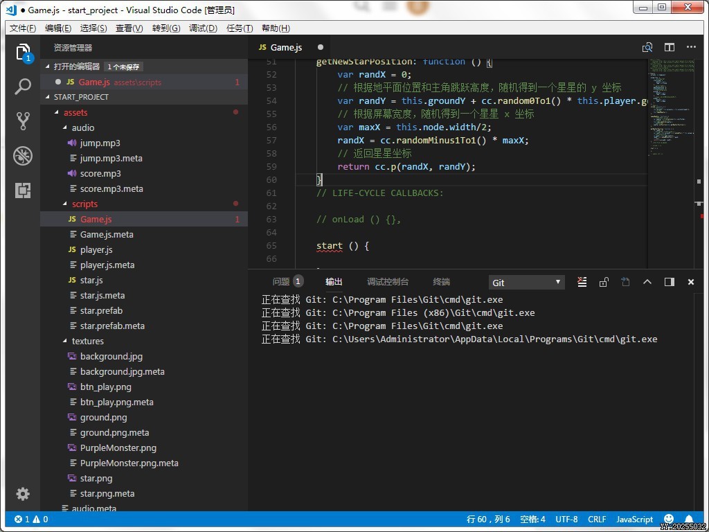 接下来我们继续修改Game脚本,在onLoad方法后面添加生成星星的逻辑: