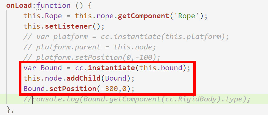 然后我发现如果我直接将这个bound预制体在Cocos Creator 中拖到canvas节点下然后运行,玩家又不能穿过这个预制体了,这说明这个预制体本身是没有问题的,那问题出在哪里呢?