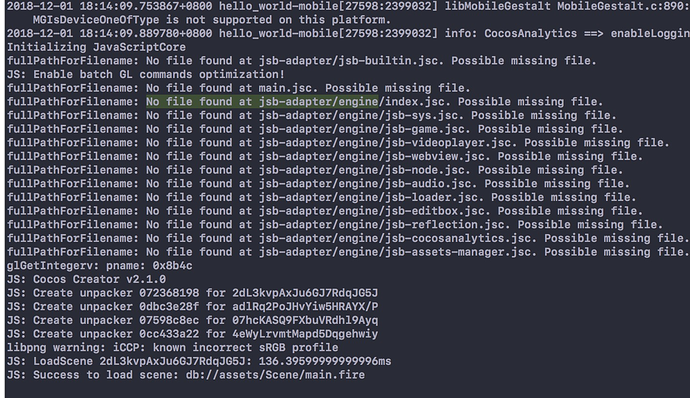 网页上游戏正常,但是iOS上表现异常,报错说是找不到文件
