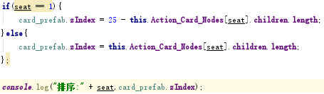 层级关系错误,代码中对精灵的zIndex进行了输出console.log(“排序:” + seat,card_prefab.zIndex);