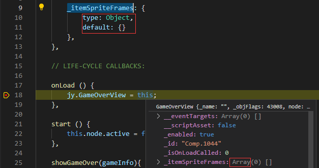 1、一开始格式为 _itemSpriteFrames: [] //数组形式的