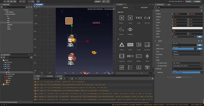 重现方式:给Node添加一个碰撞框,此时节点移动工具框和碰撞框重合,节点移动工具只能上下左右直线移动