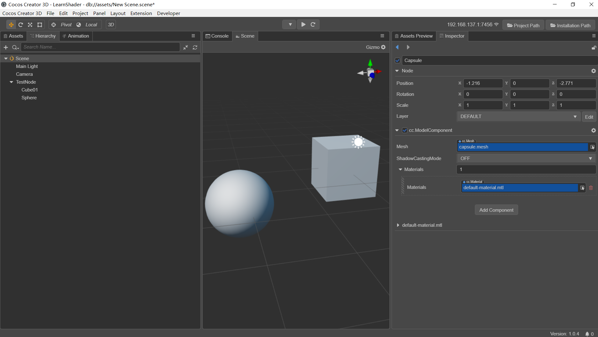 然后再TestNode下面再添加一个子节点(胶囊),先不保存