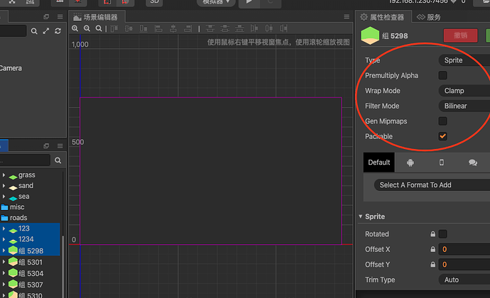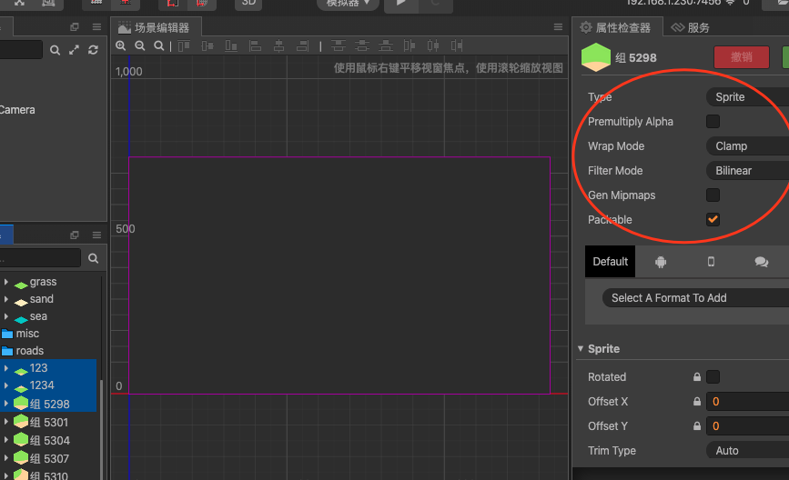 2.2.2场景中的节点可以多选修改,资源文件中的图片多选无效,比如批量修改多张图片的Filter Mode就只有最后一张修改成功