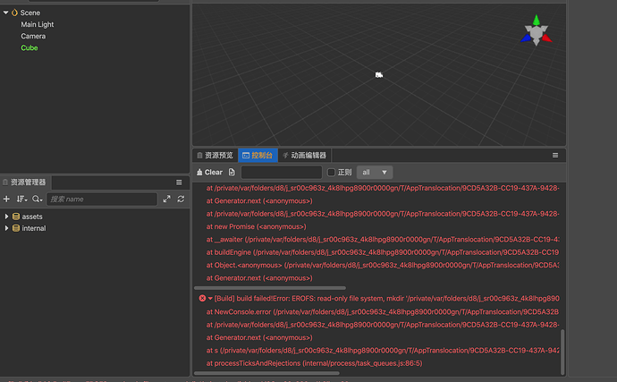 当前构建的输出文件夹是否已经被微信开发者打开了?另外,你这个信息不完整哦,看不清细节,可以在菜单里点击 开发者 -> 构建调试工具 截图一下更加详细的报错信息或者直接点击 log 按钮,把这个文件内容发过来。
