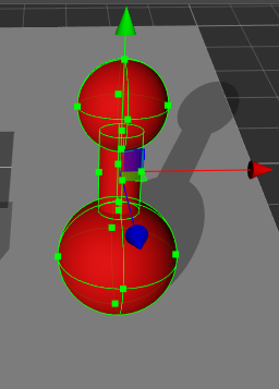 我是创建一个空的节点,然后在空的节点下创建2个球和一个圆柱。然后在空的节点上加入了三个碰撞组件,合成的这个东西。如果节点不直接渲染模型的话,就会出现我描述的这个情况。