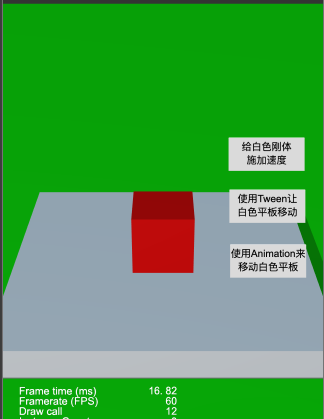 当我使用三种方式将白色平台缓缓上移动的时候,理想的情况应该是平台会托举着红色物体上移动。