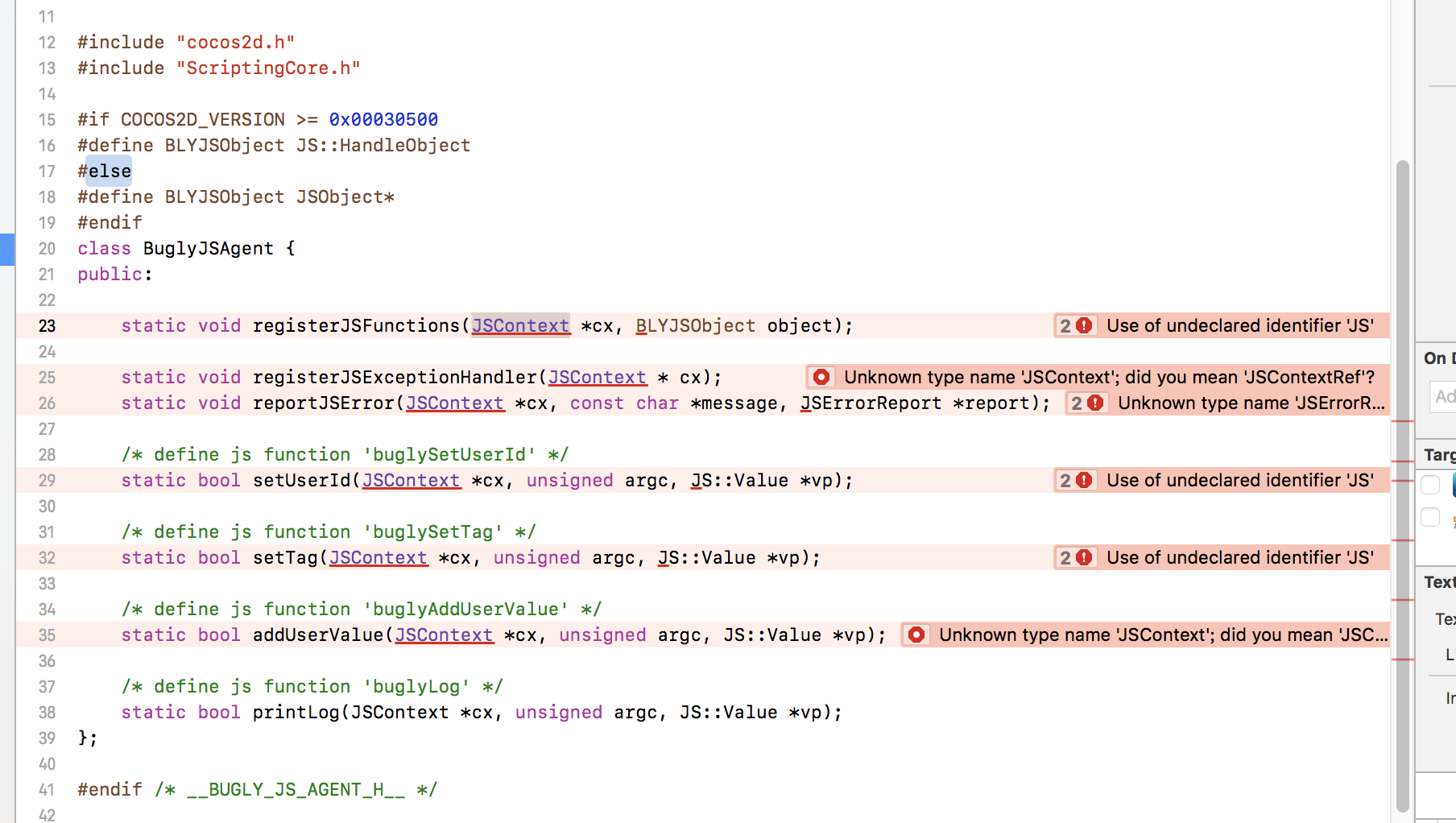 修改:JS_SetErrorReporter(cx, BuglyJSAgent::reportJSError);