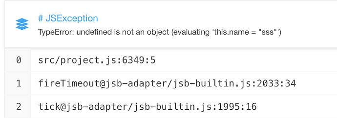 打包的时候,js文件合并成project.js一个文件了。 上面不是说了是该文件第几行吗, 你在build文件夹中将project.js找出来找到那行代码, 就知道那儿出错了。 而且看你这报错信心, 应该是 this.name 中的this 为null 或者 undefied了。