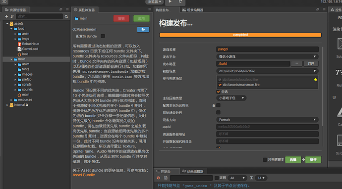 main是保留目录,无法在属性检查器中设置成小游戏子包,恰恰当时想使用main作为主体子包,这时候发现构件发布有主包压缩类型,说可以设置内置bundle的类型,立马尝试设置成小游戏子包;再加上可能由于main包里面场景需要勾选参与构建,否则报错,然后出现了如上的错误白屏加载;