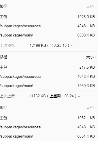 如图资源管理器目录结构,resources和main包都设置为小游戏子包,初始场景分包和不分包都试过;