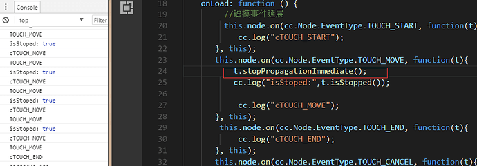 由此得到结论,button会阻碍触摸事件传递给父节点。。但是加入t.stopPropagationImmediate();,父节点可以重新接受到触摸事件。。。。真是有一种吃了狗屎的感觉。。我不仅要问stopPropagationImmediate这玩意到底是什么东东??