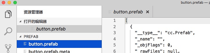 将prefab文件夹整个拖进vs code编辑器,打开后如下图所示