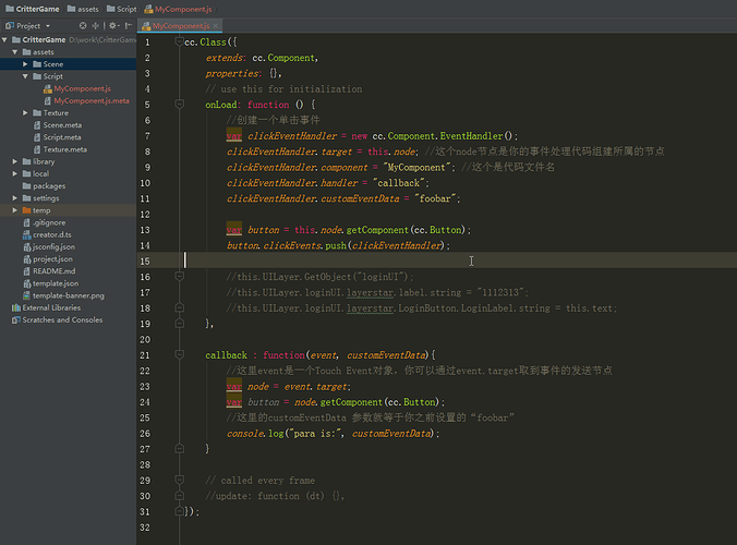 clickEventHandler.component = “MyComponent”; //这个是代码文件名