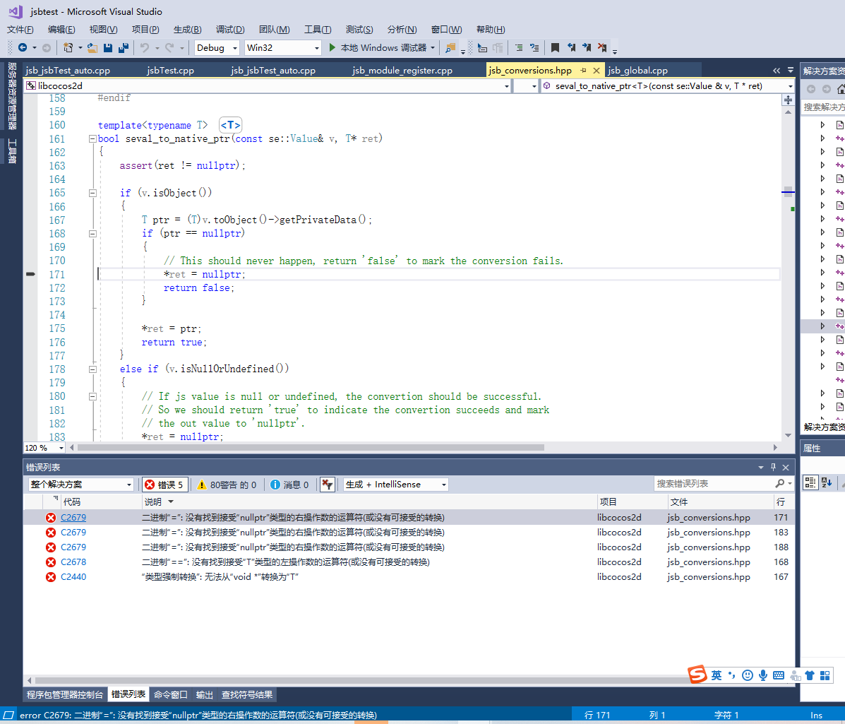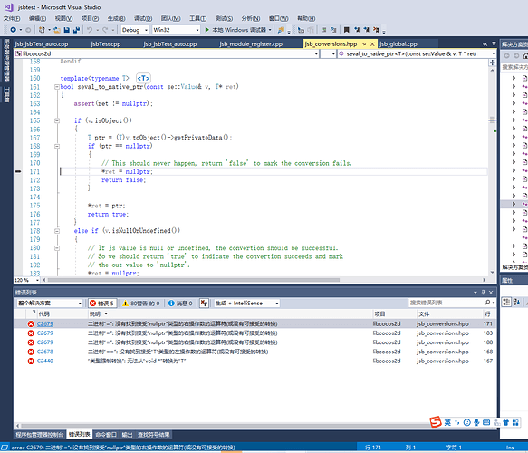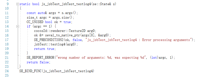 但是自动绑定出来的cpp中的函数调试会报错,自动绑定出来的函数是这样的